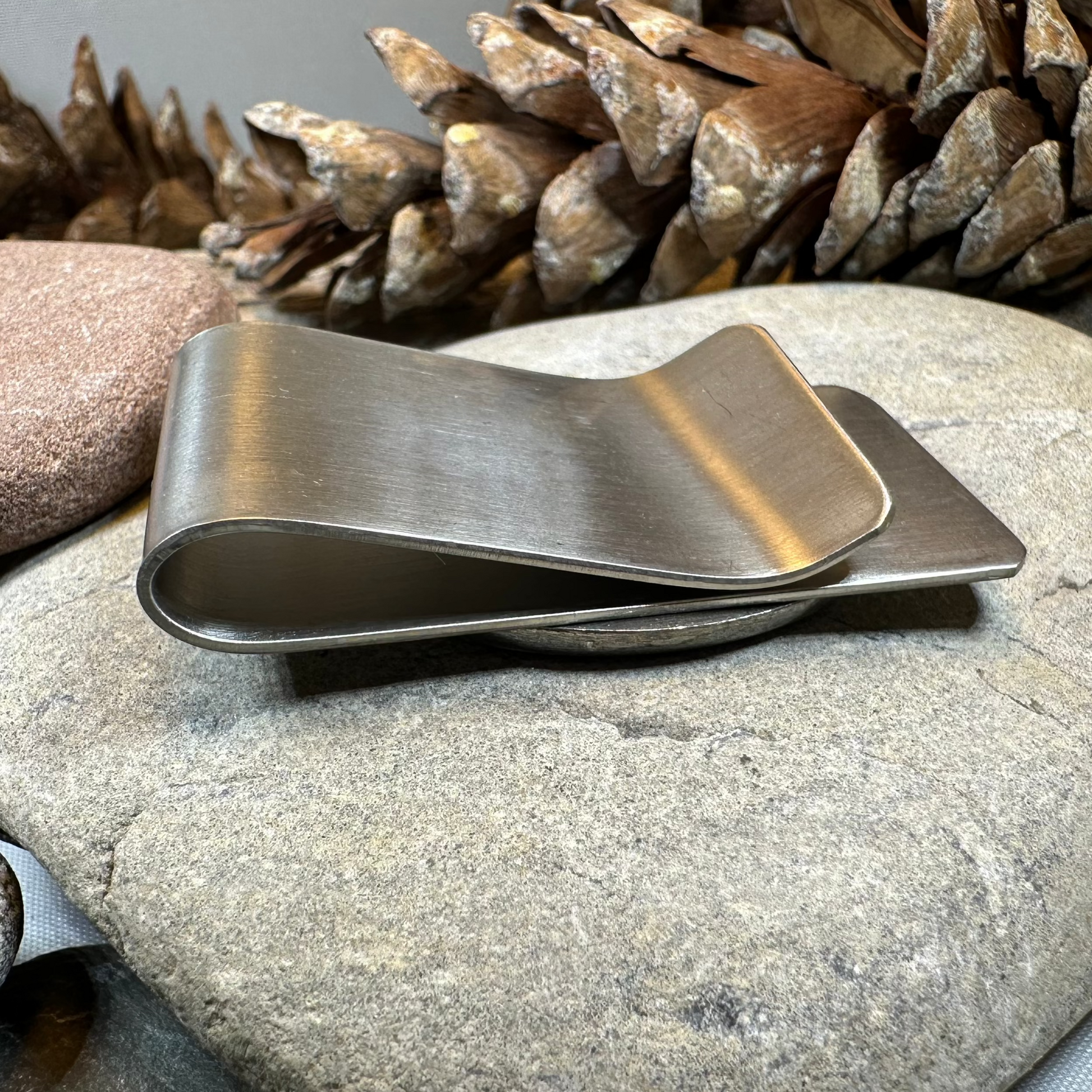 Beautiful stainless steel money clip with a matte finish and pewter focal piece. A classic Celtic Raven design set into a pewter money clamp.
