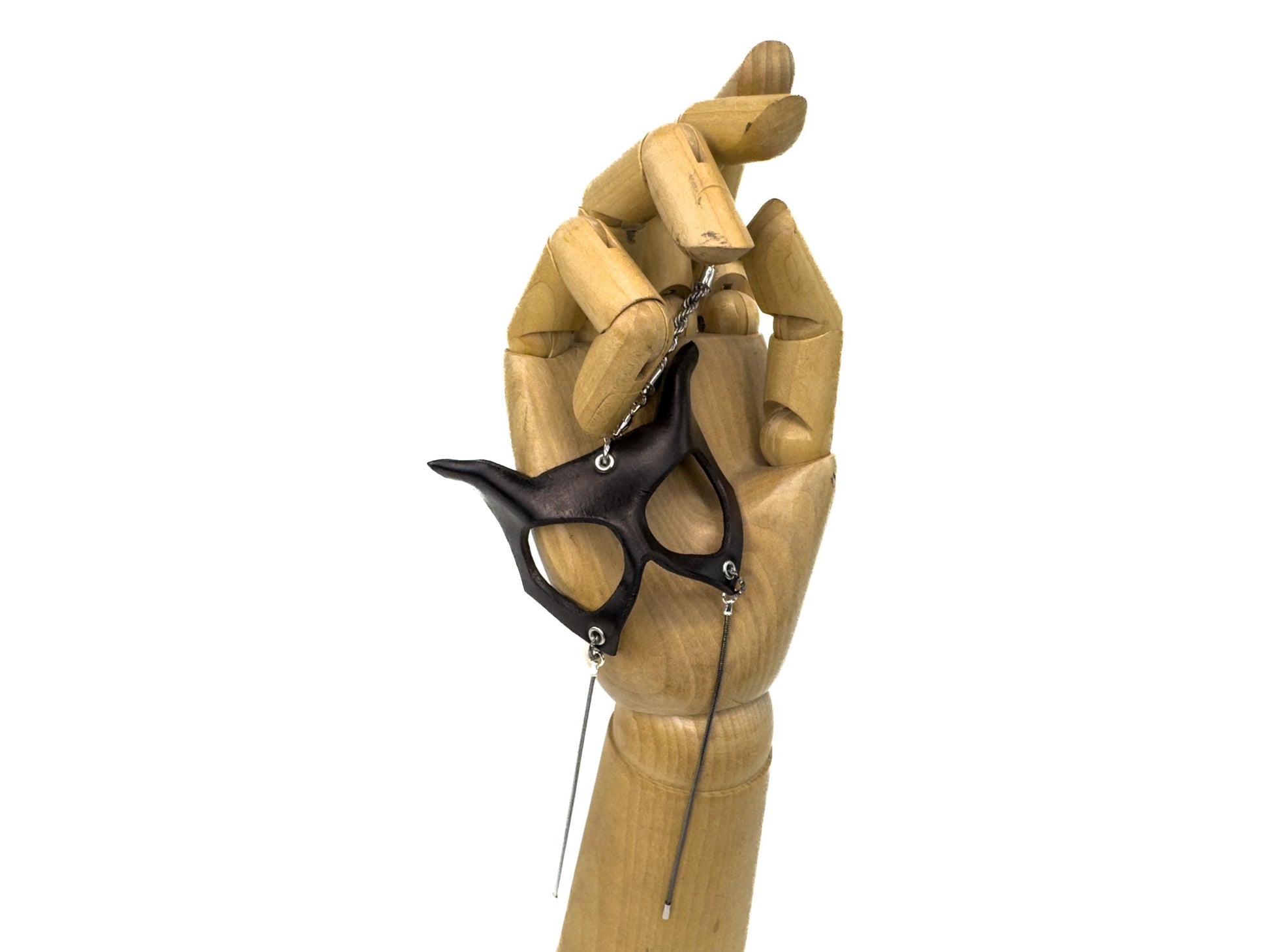 Introducing our handmade leather mini cat mask—a meticulously crafted, full-detail miniature that captures the mysterious elegance and playful spirit of the cat, while embodying the artistry and sophistication of a full-sized mask. Whether you're captivated by the cat's symbolism of independence, curiosity, or grace, or simply adore unique, handcrafted accessories, this miniature leather mask charm is the purrfect addition to your collection. Show off your feline-inspired style with one (or many) of these handcrafted, genuine leather cat masks, each one a tribute to the beauty and allure of our favorite four-legged companions.