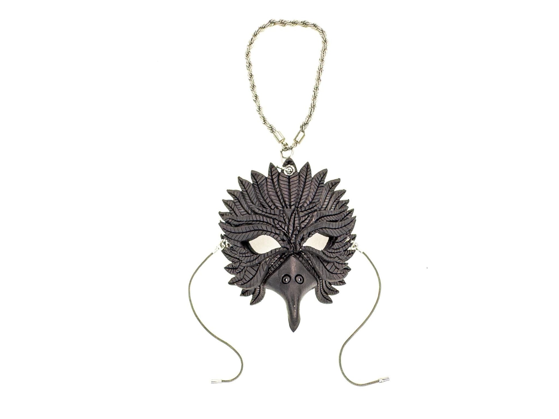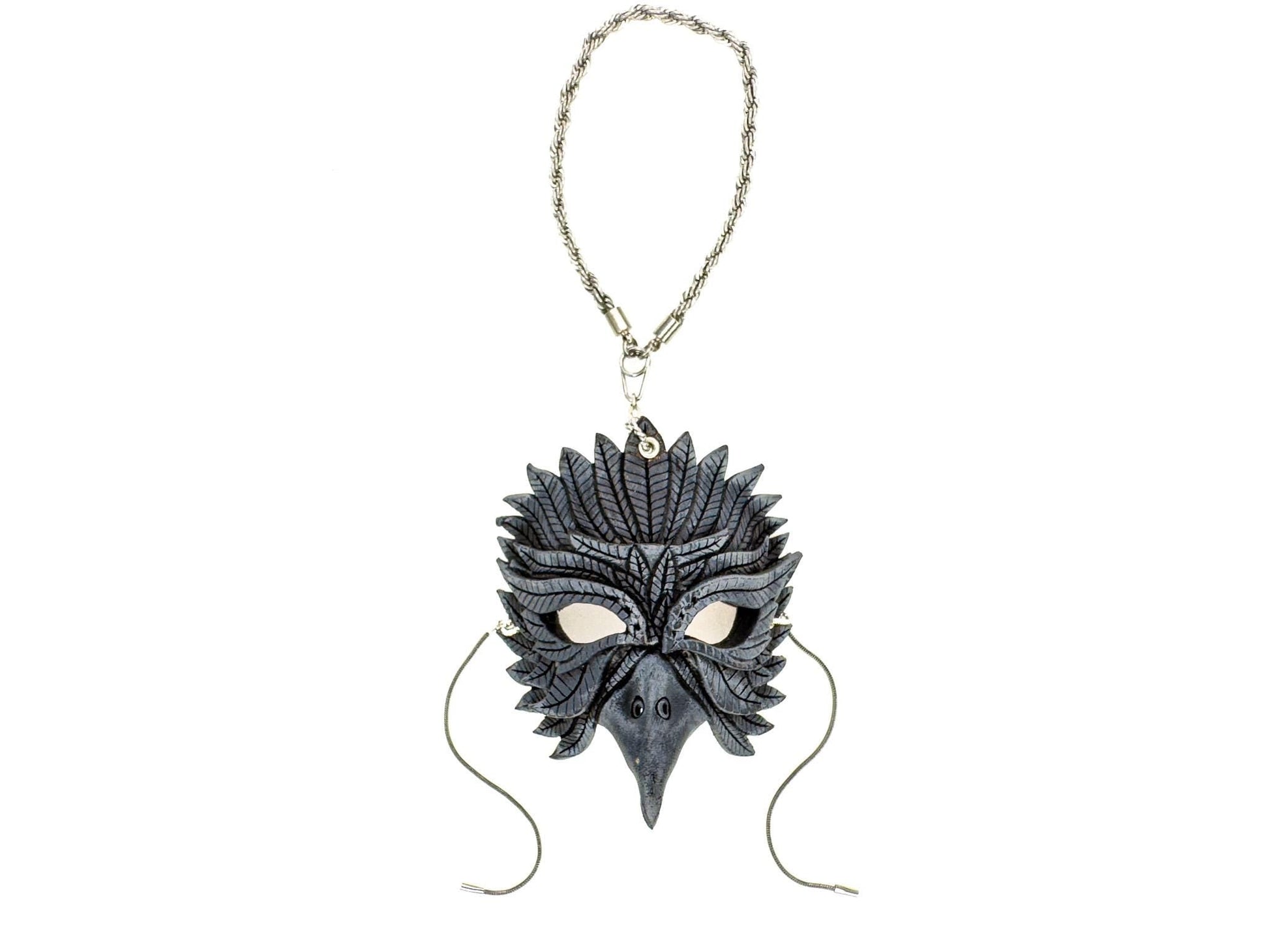 Introducing our handmade leather mini raven mask—a meticulously crafted, full-detail miniature that captures the mystique and elegance of the raven, while embodying the beauty and style of a full-sized mask. Show off your refined taste and unique aesthetic with one (or many) of these handcrafted, genuine leather miniature mask charms. Whether you're drawn to the raven's symbolism of mystery and transformation, or simply love one-of-a-kind accessories, these charming leather masks are the perfect addition to any collection.