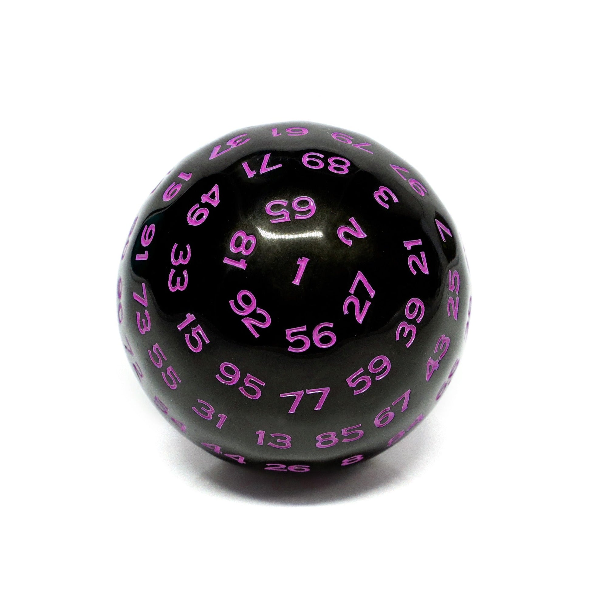 "Purple" Single 100 Sided Polyhedral Dice (D100) | Solid Black Color (45mm) Purple
