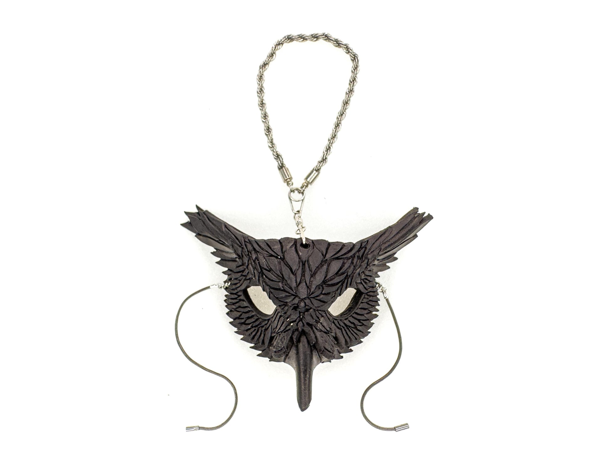Introducing our handmade leather mini owl mask—a meticulously crafted, full-detail miniature that captures the wisdom and mystery of the owl, while showcasing the elegance and craftsmanship of a full-sized mask. Whether you're drawn to the owl's symbolism of knowledge, intuition, or transformation, or simply love unique, handcrafted accessories, this miniature leather mask charm is the perfect addition to your collection. Show off your wise and whimsical style with one (or many) of these handcrafted, genuine leather owl masks, each one a tribute to the beauty and mystique of this nocturnal bird of prey.